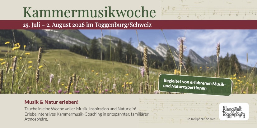 Herzlich Willkommen beim Abschluss unserer Kammermusikwoche in der Schweiz: